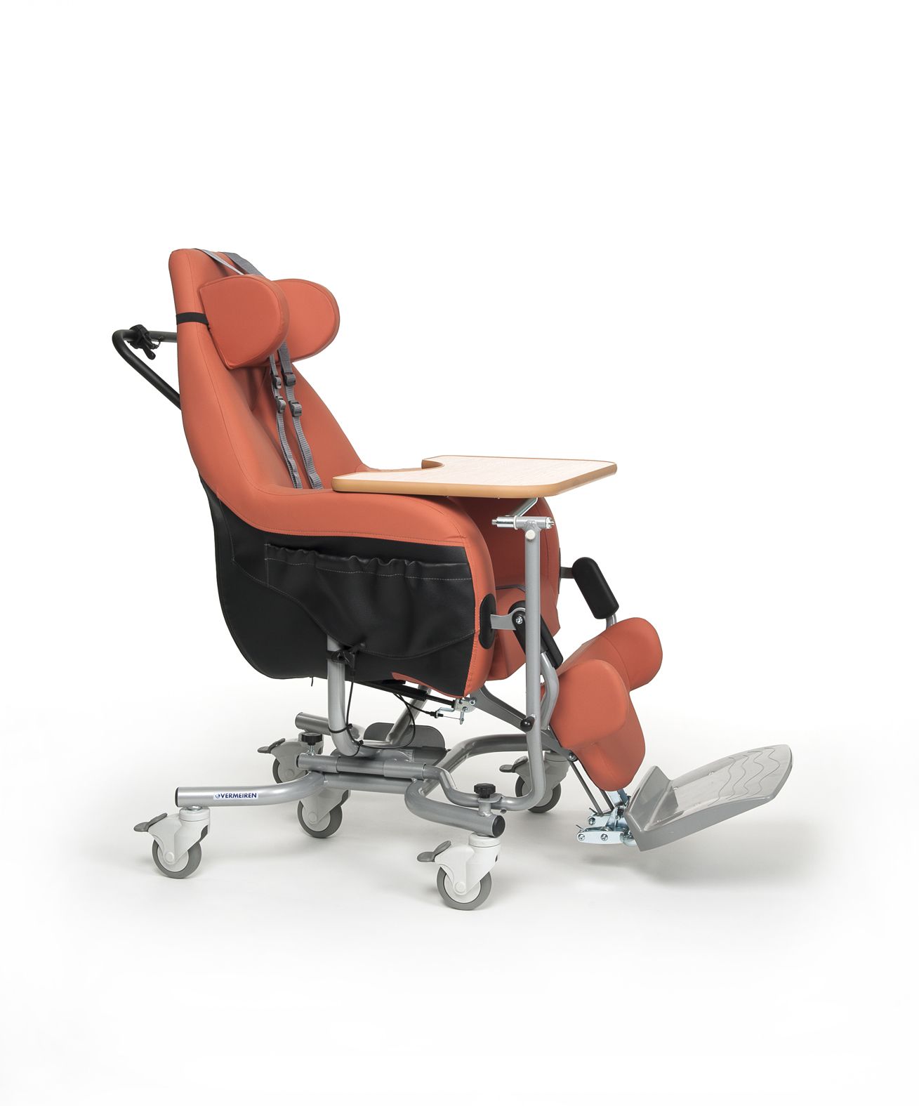 Кресло-коляска инвалидное Vermeiren Altitude Оснащена пятиточечным ремнем безопасности и подголовником. Наклон положения сиденья и подставки для ног плавно регулируются с помощью газовых амортизаторов. Имеется возможность изменения высоты сиденья и спинки для обеспечения повышенного комфорта большим пациентам. Обитое чашеобразное сиденье с биэластичным чехлом для максимального комфорта.