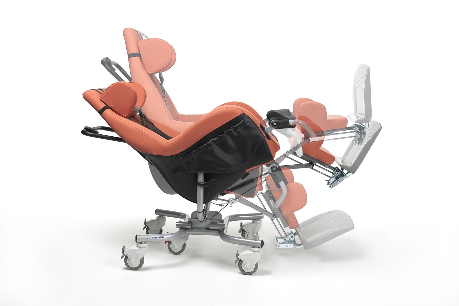 Кресло-коляска Vermeiren Coraille с повышенным уровнем комфорта создано для инвалидов и людей пожилого возраста, испытывающих трудности с передвижением. Его можно использовать дома или в больнице, в центре реабилитации, санатории. Пользователь может быть перевозим в помещениях или на прогулке. Эргономичные спинка, сиденье, подголовник обеспечивают высокий уровень комфорта. Снижается нагрузка на позвоночник, шею, область таза. У гол наклона спинки можно отрегулировать для наибольшего удобства пользователя. Материал, которым обтянуто сиденье и спинка, воздухопроницаем. Он «дышит».