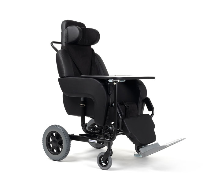 Пользователь может быть перевозим в помещениях или на прогулке. Эргономичные спинка, сиденье, подголовник обеспечивают высокий уровень комфорта. Снижается нагрузка на позвоночник, шею, область таза. Угол наклона спинки можно отрегулировать для наибольшего удобства пользователя. Материал, которым обтянуто сиденье и спинка, воздухопроницаем. Он «дышит».