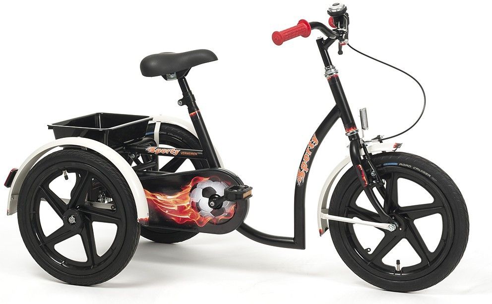 Велосипед SPORTY бельгийской компании Vermeiren предназначен для детей и подростков с болезнями, связанными с поражением центральной нервной и опорно-двигательной системы. Разработчики создали конструкцию велосипеда, учитывающую особенности маленьких пациентов с детским церебральным параличом. Велосипед оснащен специальными приспособлениями и опциями, которые адаптируют его под индивидуальные потребности Вашего ребенка. Колеса велосипеда большие, его шины невозможно проколоть. Это позволяет использовать велосипед на улице и обеспечивать езду по любой поверхности. Производитель создал велосипед с высокой маневренностью, поэтому Ваш ребенок сможет проехать через двери. Велосипед имеет низкую раму, поэтому маленький владелец велосипед сможет легко сходит с него и залезать. Велосипед был разработан таким образом, что его центр тяжести низок. Благодаря этому вождение на таком велосипеде будет устойчивым и безопасным. Разработчики снабдили велосипед дополнительными опциями и функциями, уменьшающими риск падения с него ребенка. Велосипед для детей с ДЦП Vermeiren SPORTY разработан для того, чтобы Ваш ребенок развивал вестибулярный аппарат при езде. Также тренировка на таком велосипеде позволит повысить гибкость суставов и тонуса мышц спины. Велосипед стимулирует суставы работать, при этом укрепляются мышцы ног, развивается координация движения. Ко всему прочему, ребенок сможет тренировать шаговые движения. В комплект велосипеда для детей с ДЦП Vermeiren SPORTY входят поддержки рук и запястий, педаль с кожаным фиксатором и специальной клипсой, поддержка для спины.